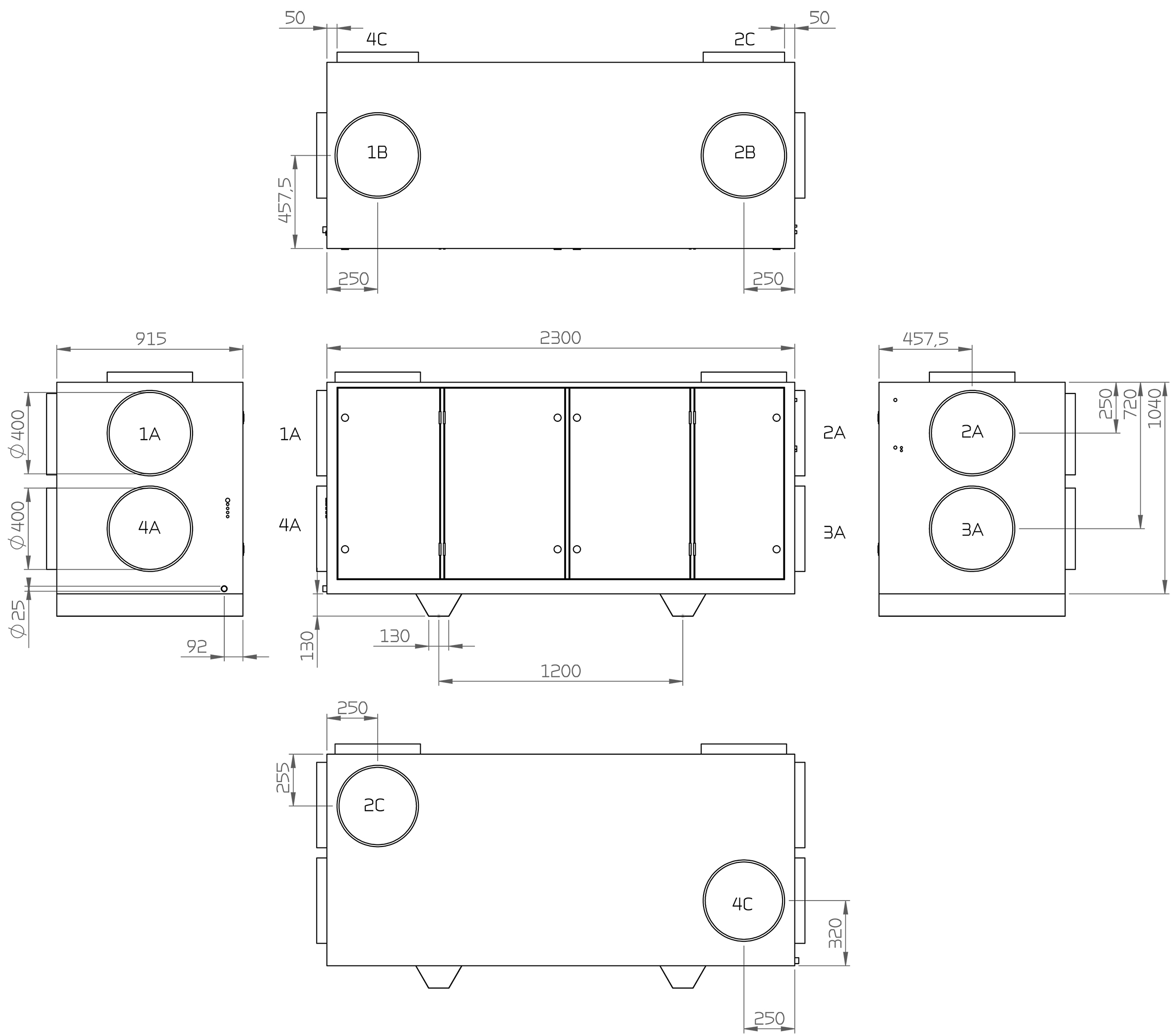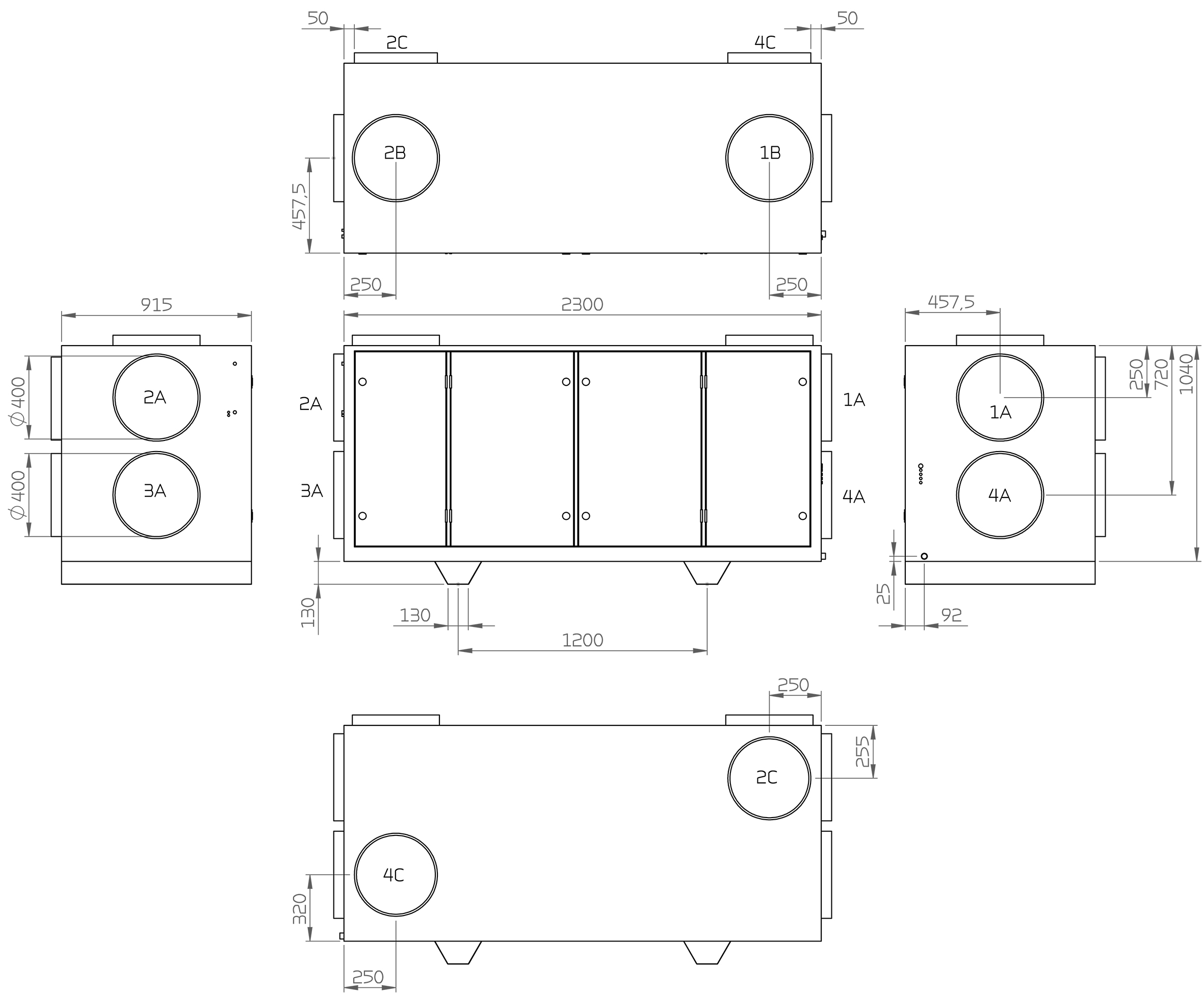 Alle Angaben verstehen sich in mm. 1. Außenluft A. Giebelplatzierung |