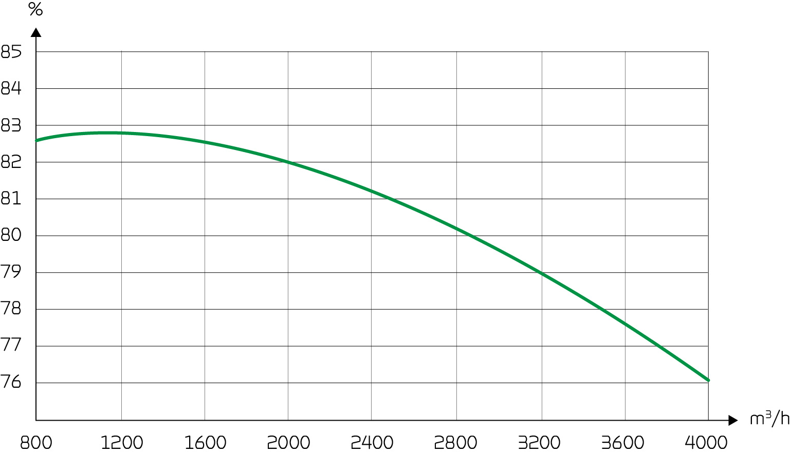 TemperaturwirkungsgradTemperturwirkungsgrad für Rotierende Wärmetauscher gemäß EN308 (Trocken). |