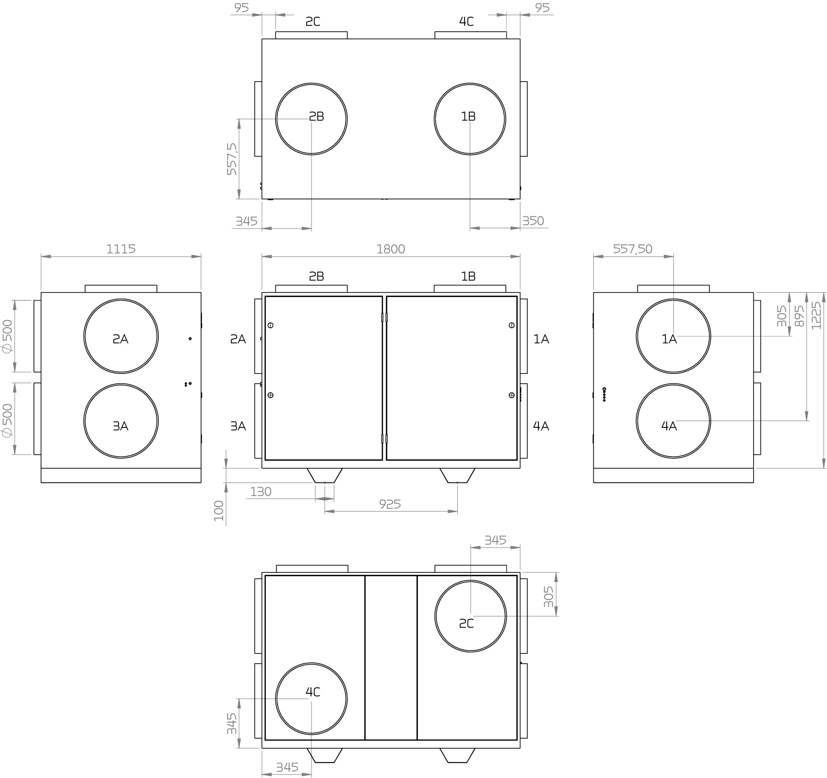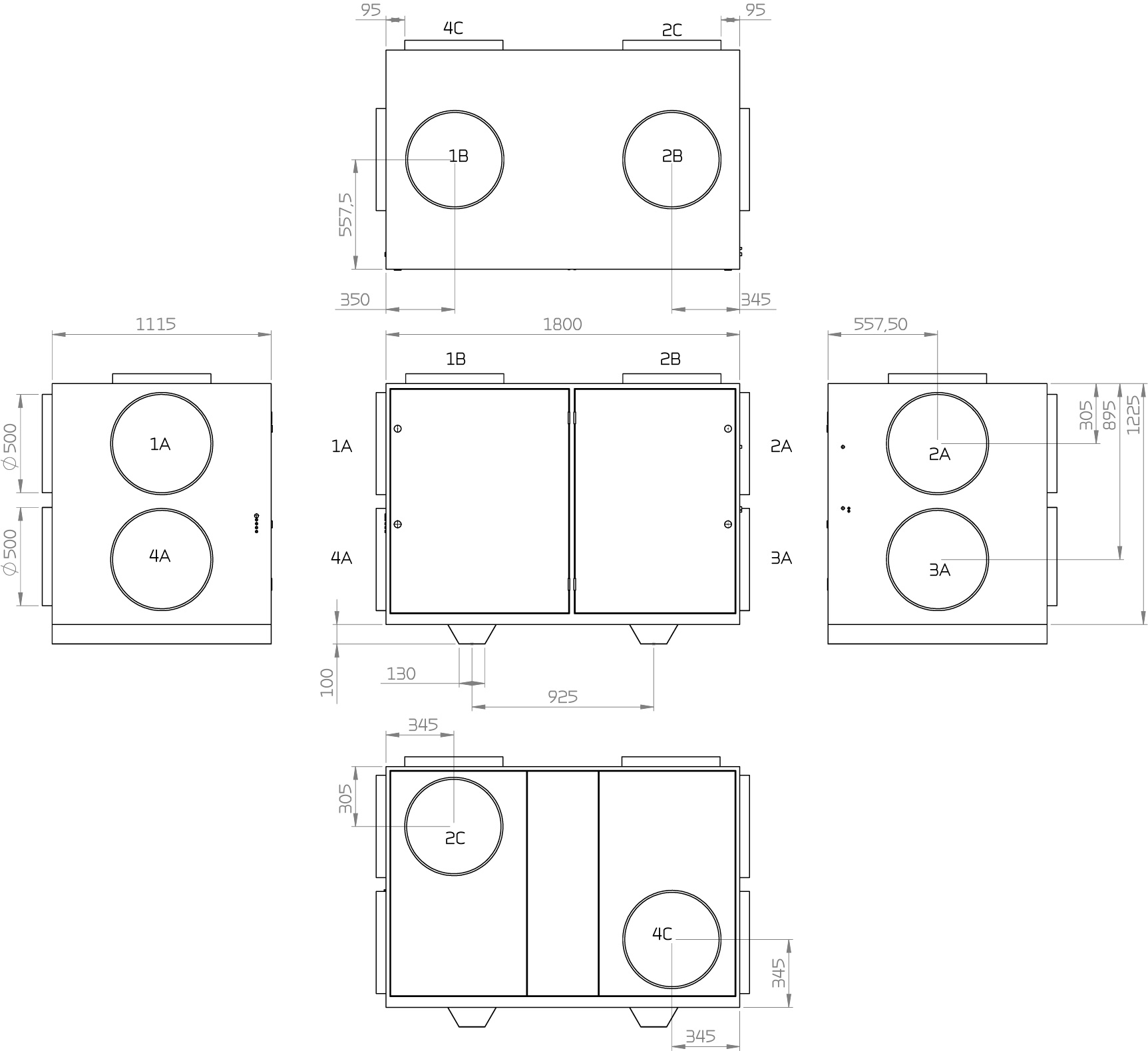 Die Konstruktion der VR-Serie mit selbsttragendem Rahmen und 50 mm Isolierung sorgt für ein robustes und kompaktes Gerät, das sich problemlos in Technikräumen mit begrenztem Platzangebot aufstellen lässt. Flexible Stutzenpositionen und universelle Anschluss-möglichkeiten erleichtern die Anpassung der Installation an das Gebäude.