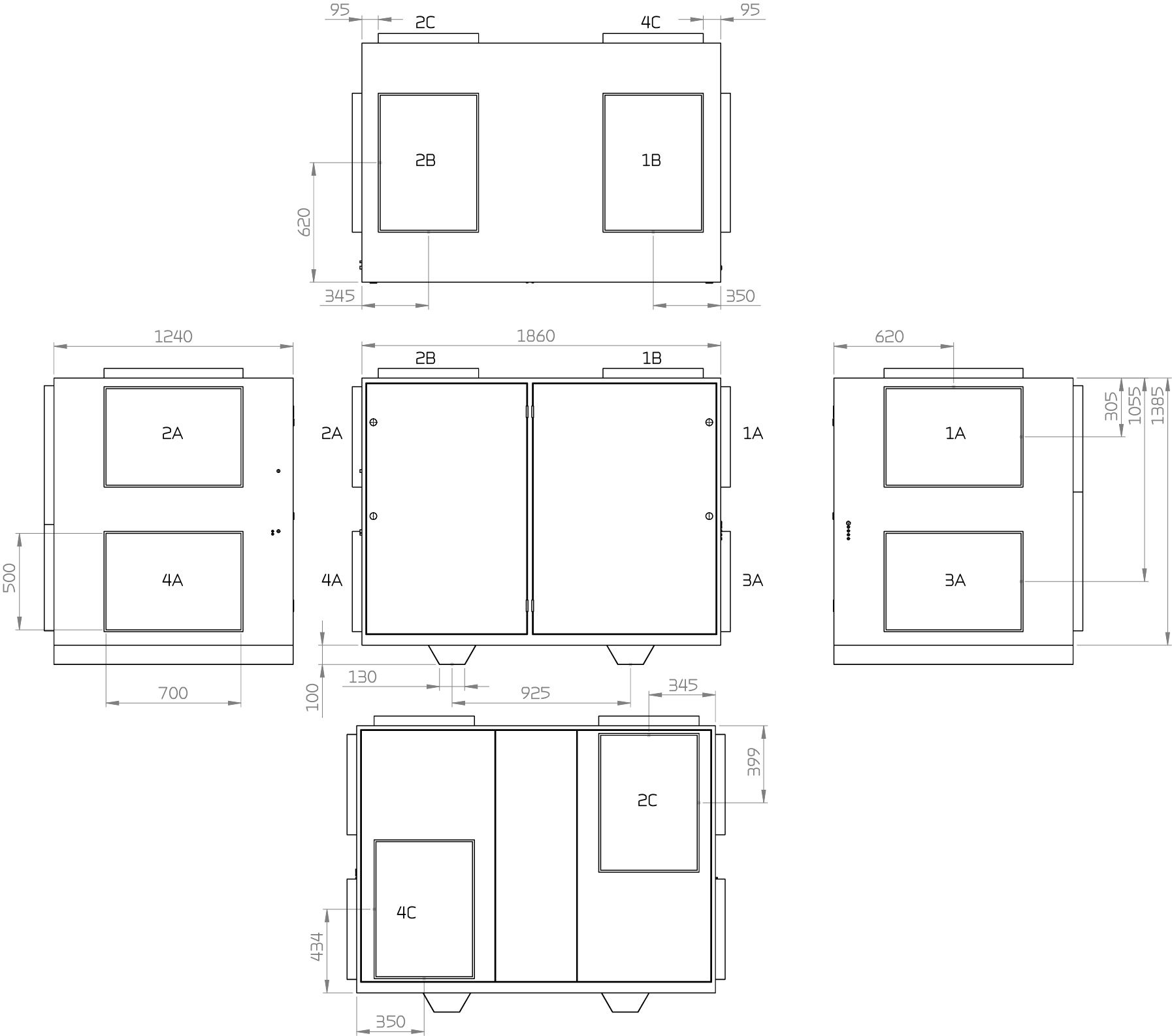 Abmessungen (B×T×H) ohne Grundrahmen 1860 x 1240 x 1485 mm
